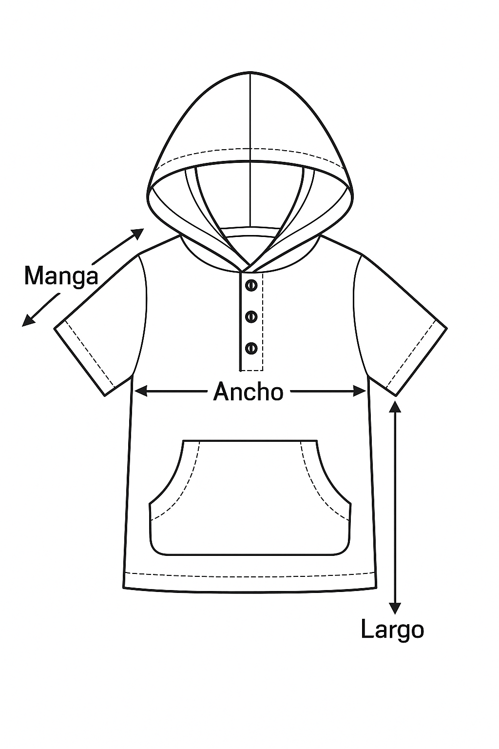 Confeccionada con lino de la mejor calidad, la camisola es suave, liviana y fresca, ideal para mantener a los chicos cómodos durante todo el día. Su diseño práctico incluye capucha, botones y bolsillo, detalles que aportan funcionalidad y un toque encantador.